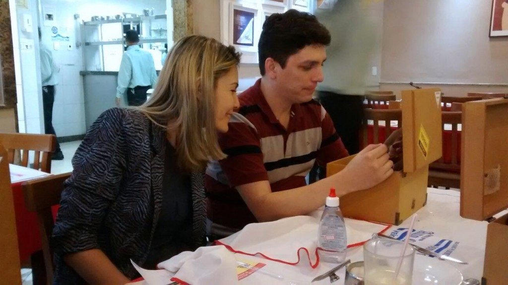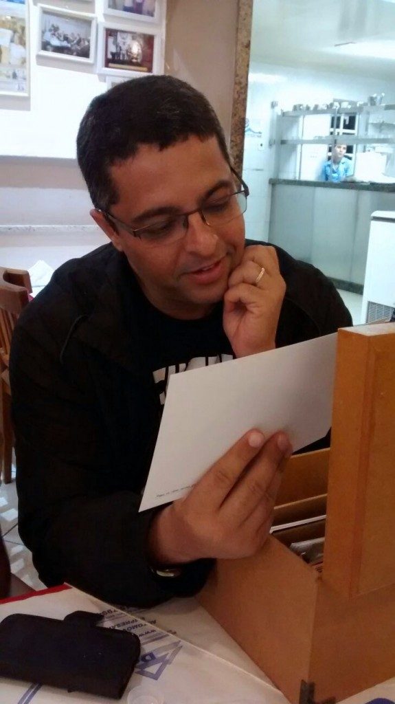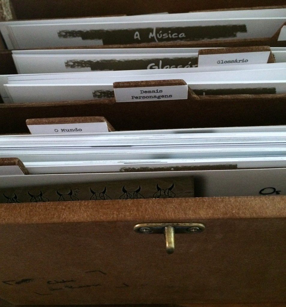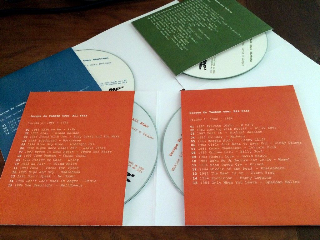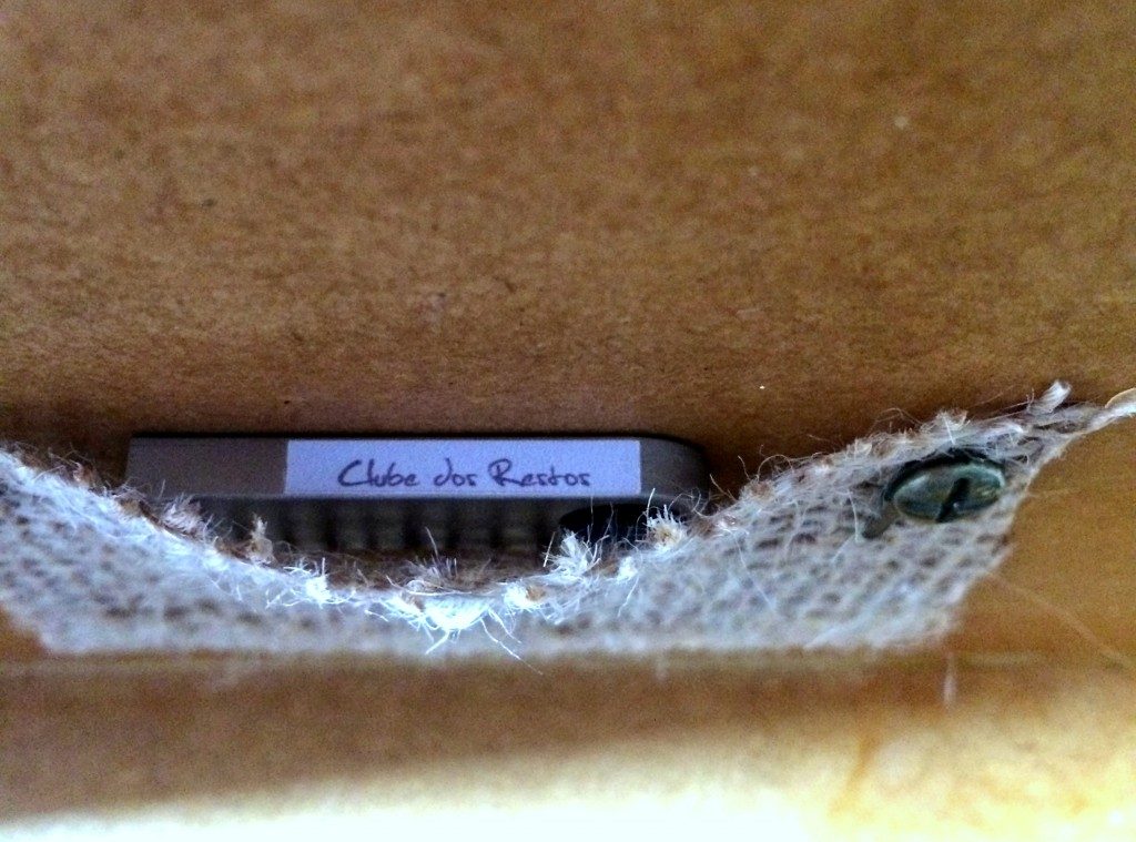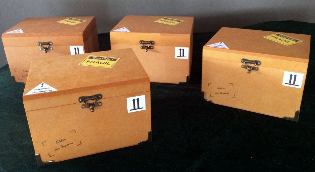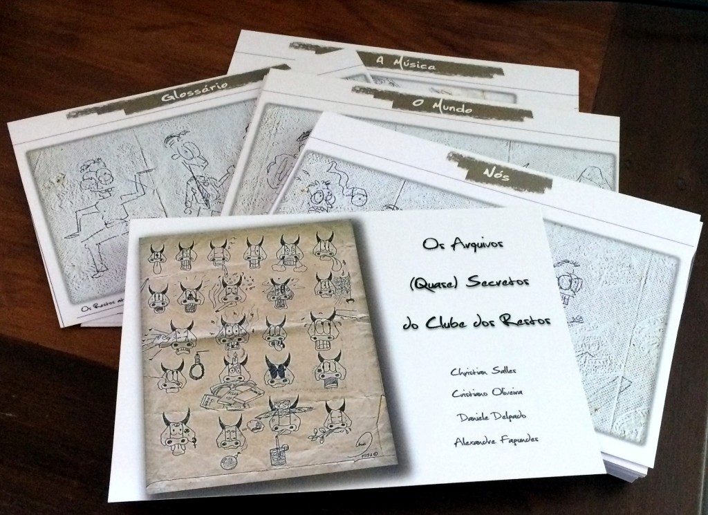 Este foi um daqueles trabalhos que ‘caem nosso colo’ como um presente. É a história de um período específico da vida de 4 amigos que foi sendo registrada por eles próprios, de forma fragmentada, na época em que conviviam. Um deles (Alexandre) coletou e guardou em uma pasta os registros (que consistiam de textos, rabiscos, fotos, desenhos, panfletos etc.) com o intuito de escrever a história do grupo em um formato que fizesse sentido para todos. Houve muitos ensaios, diversas versões até que, no ano passado, já sabendo exatamente o que pretendia fazer, Alexandre nos contatou para, juntos, darmos corpo ao projeto Clube dos Restos que seria dado de presente aos seus 3 amigos. A história foi transcrita, a partir do seu texto, e disposta em fichas tamanho A5, pautadas, com impressão colorida frente e verso (papel Couchê 300 g/m²). Para guardá-las, foram feitas caixas de madeira MDF com divisórias e detalhes personalizados. Três encartes de CD (sendo um deles duplo) contendo a trilha sonora da época – nacional e internacional – complementam a história. Música, textos e fotos que compõem o material foram, também, disponibilizados em pen drive. Linda a iniciativa; prazeroso o trabalho; emocionante a entrega.
